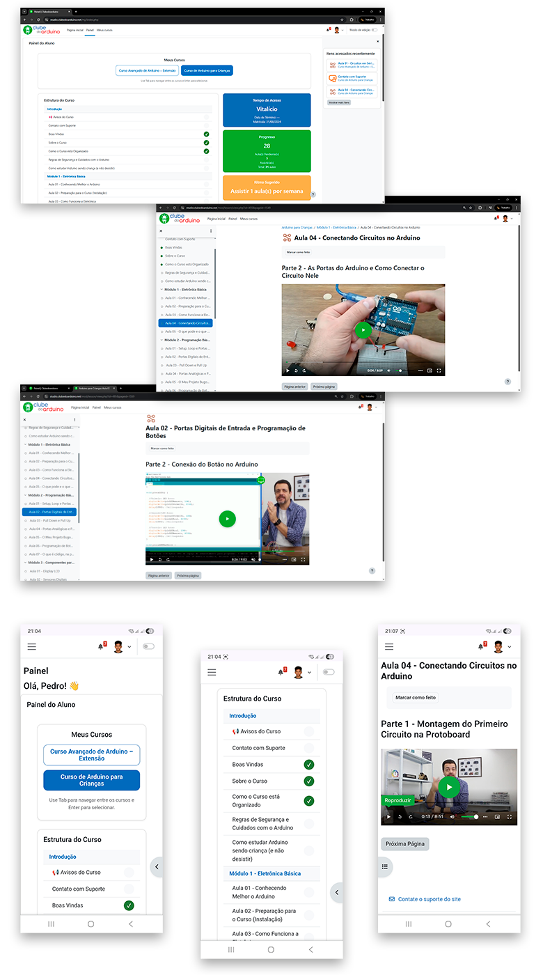 Estude em ambiente seguro, organizado e fácil de usar — pelo computador, tablet ou celular.