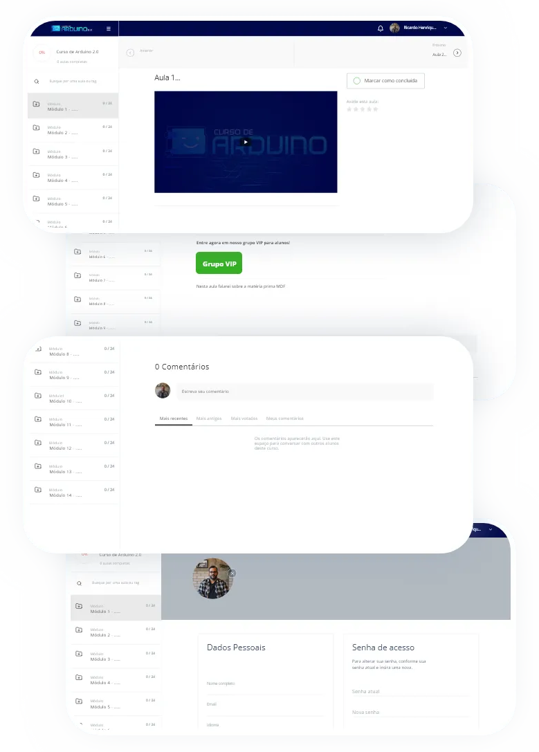 Aprenda tudo sobre Arduino com acesso total a todos os cursos, incluindo o Curso Avançado.